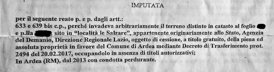 ARDEA – In tribunale la vicenda delle occupazioni abusive nel comprensorio delle Salzare non sembra essersi mai chiusa realmente. Nella recente udienza del 14 aprile 2026 al Tribunale ordinario di Velletri, per un caso di occupazione abusiva di un lotto del comprensorio delle Salzare con l’imputazione di reato dell’articolo 633 (Invasione di terreni o edifici) e 639 bis (casi di esclusione della perseguibilità a querela) del codice penale, l’Avv. della difesa Francesco Falco, impegnato da anni su procedimenti legati alla stessa area, oltre a depositare delle prove ha indicato tra i testimoni il Sindaco di Ardea, Maurizio Cremonini, il Dirigente dell’Ufficio Urbanistica del Comune di Ardea e il giornalista locale Luigi Centore.
